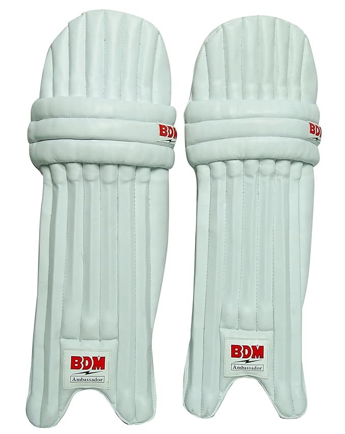 Bdm Ambassador White Color Batting Leg Guard / Pads. Brand: Bdm | Bl15 Ambassador . Color: White. Size (In Inches): 26.5″ X 11″ Inches (Approx).Weight: 1.7 Kg (Approx.). Material: Pu Leather . Features : 1) Pvc Leg Guard With Sponge Bolster & Velcro Straps.2) Batting Pads Protect The Shins, Knees And The Lower Thigh.3) These Pads Provide Equal Protection To Both Left And Right Handed Batsmen.We Maintain Stringent Grades Of Quality By Adhering To Well Defined Industry Norms.