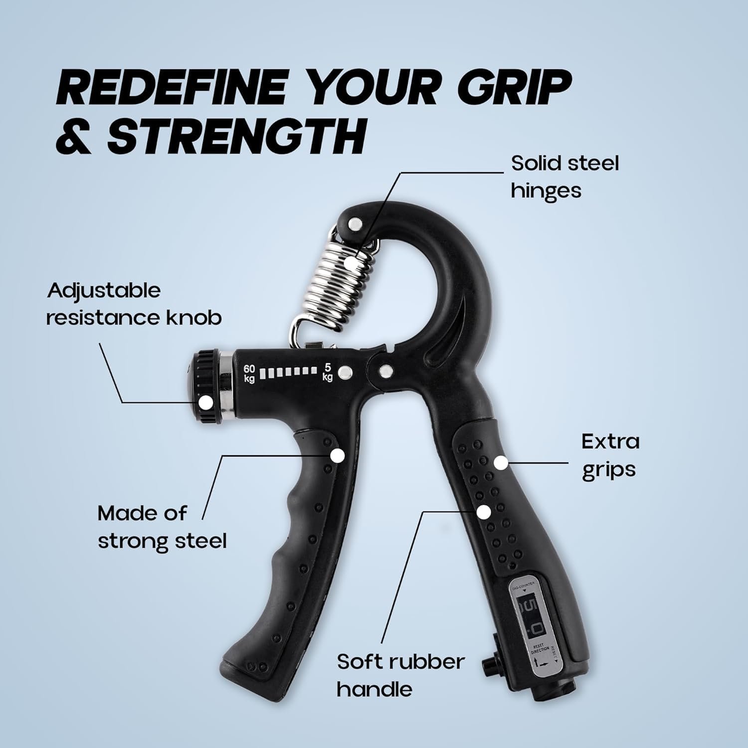 ADJUSTABLE RESISTANCE: Features variable resistance settings from 5-60 kg, allowing progressive strength training for hands, wrists and forearms